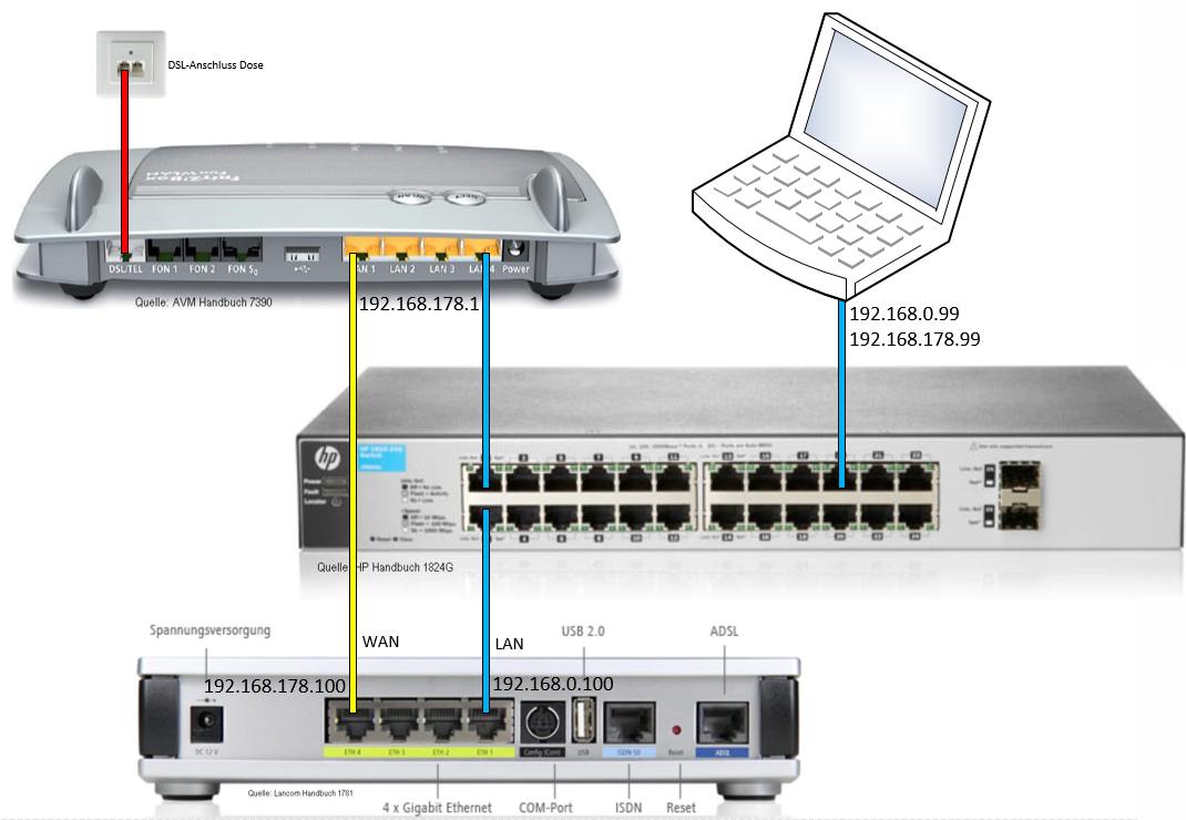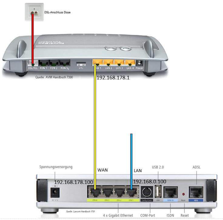 Lancom hinter Fritz-Box am splitterlosen IP-Anschluss